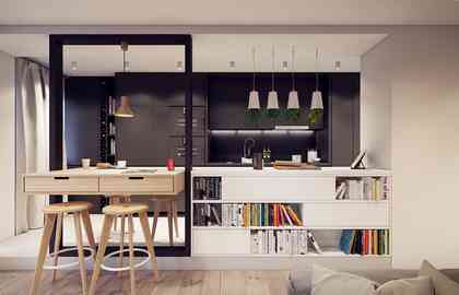 隐藏式收纳还是开放式收纳在设计之初就该划分好,当然如果当初考虑不周全,现在处理也不晚,人为地进行一下划分,可让那些凌乱的东西看起来都不见了。